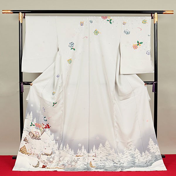> 和遊館 EHK499 十日町友禅 秀美 手描き 丹後ちりめん 白地 訪問着 クリスマス柄