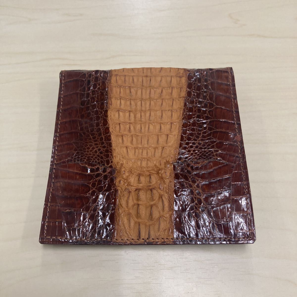 - カイマンワニ 二つ折り財布 小銭入れあり ワニ革 ブラウン