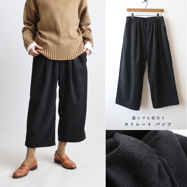 - 秋の新作 85cm コーデュロイ生地 誰にでも似合うストレートパンツ ゆったり ブラック K31C