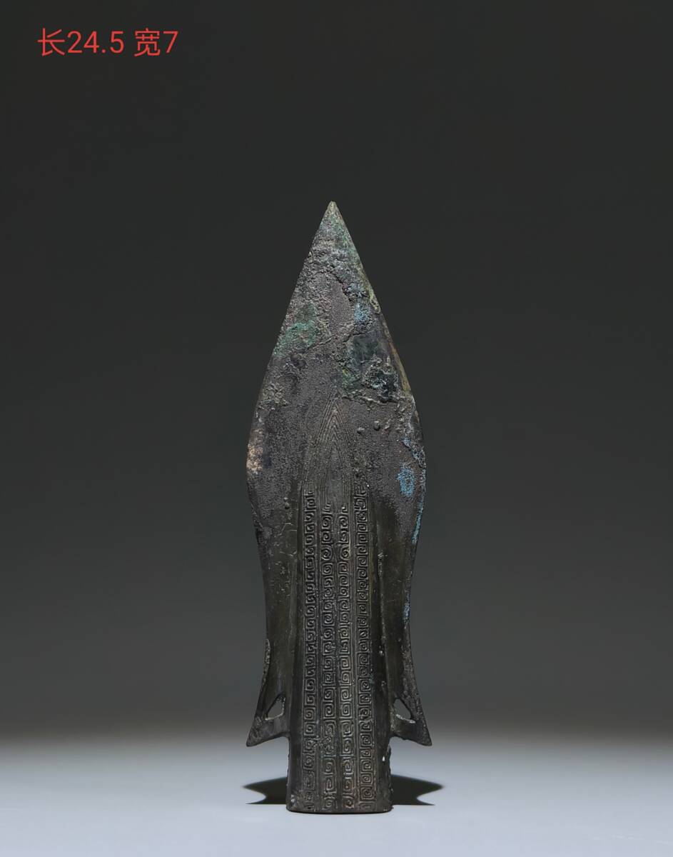 - 【超珍館蔵】戦国 青銅製 雲雷紋矛 青銅器 置物 賞物 古賞物 古董品 古美術品 時代物 旧家蔵出 稀少珍蔵品