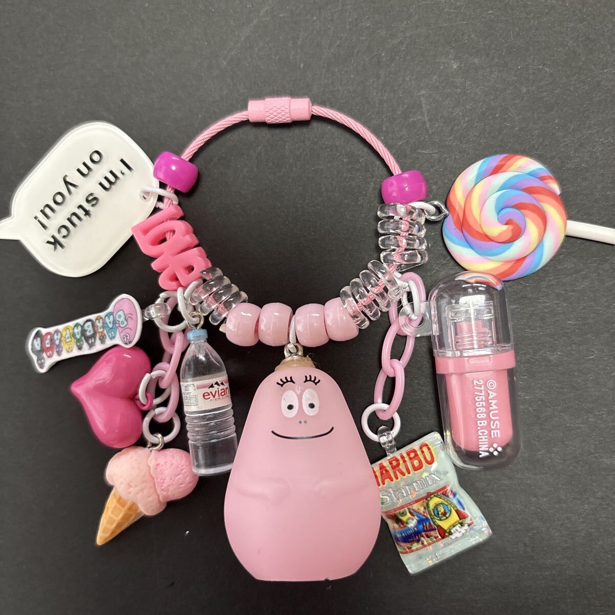 - かわいいピンクじゃらじゃらキーホルダーチャームストラップ
