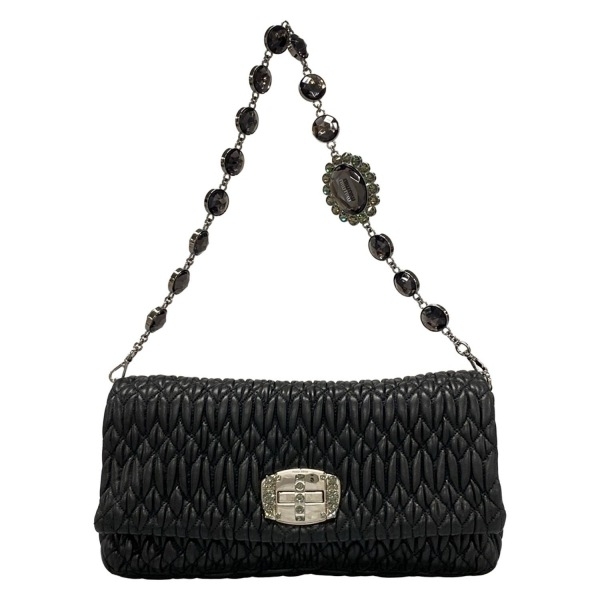 - ミュウミュウ miumiu ショルダーバッグ RP0233 ミュウクリスタル,マテラッセ レザー 黒 バッグ