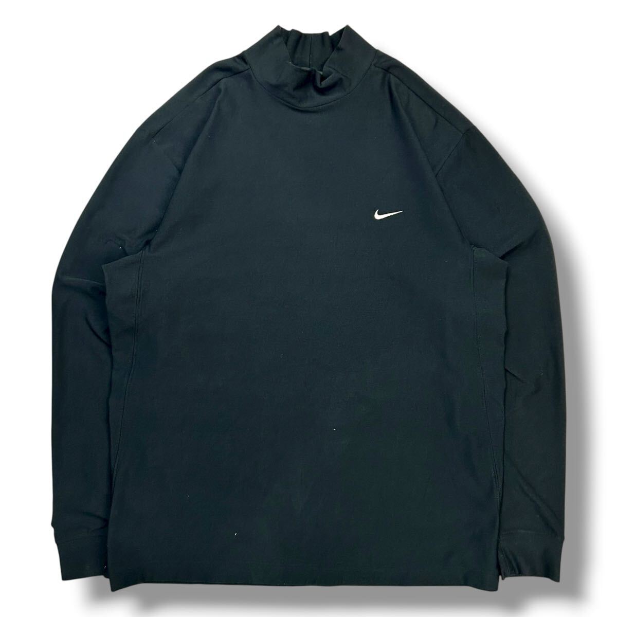 > (IT1003)NIKE golf ナイキゴルフ ロンT 長袖カットソー ゴルフウェア モックネック M ブラック ワンポイントロゴ スウォッシュ