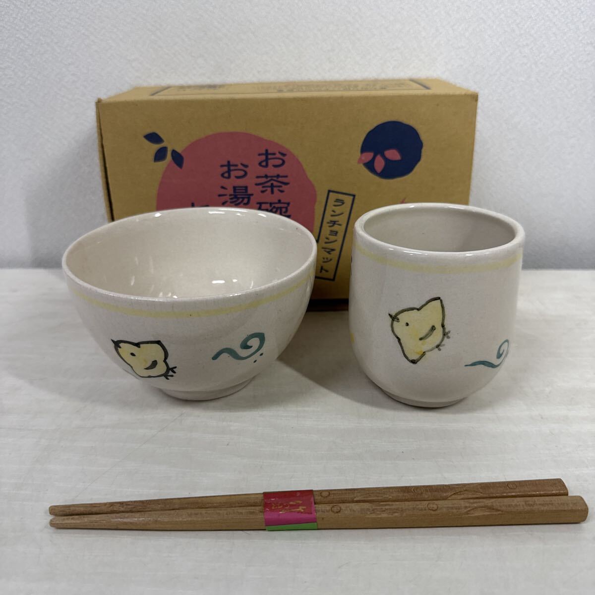 - ● お茶碗 お湯呑みセット お箸付き ランチョンマット無し 陶器 鳥 和食器 飯碗 未使用品 ●