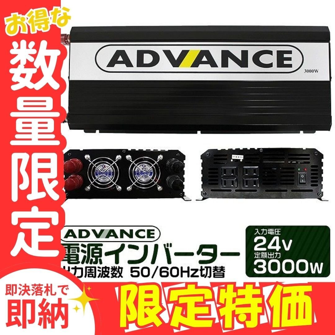 > 【限定セール】電源インバーター DC24V 定格3000W 最大6000W AC100V 50/60Hz切替 疑似正弦波 アウトドア キャンプ 災害 避難