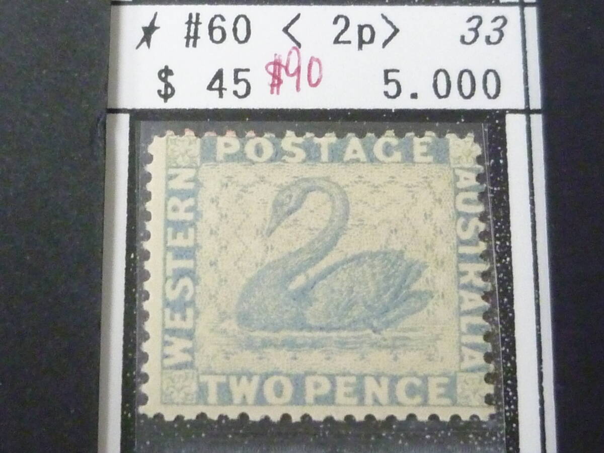 > 25 S №33 オーストラリア切手 WESTERN AUSTRALIA 1854-1912年 SC#60 2p 未使用OH 【2020年版SC評価 $90】 ※説明欄必読