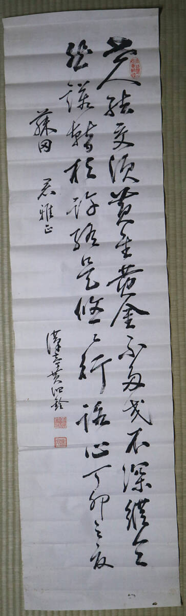 - sgk2) 漢亭 黄泗銓 三鏡齋 二行書「漢詩文」墨書 紙本 捲り <中国書画