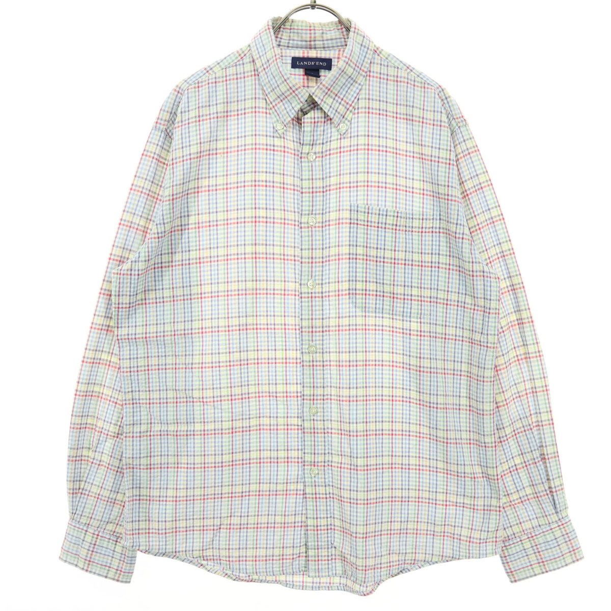 LANDS' END ランズエンド チェック柄 長袖 ボタンダウンシャツ M メンズ