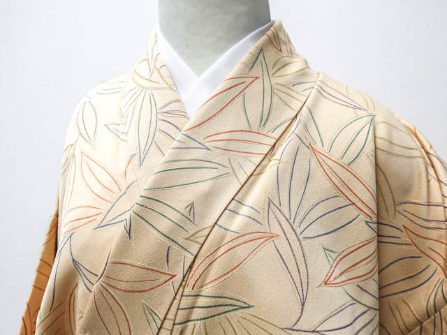 - 《京都一輝堂》【着物】小紋 地紋起こし加工着尺 葉文 身丈約166cm 裄丈約62.5cm 24z-4493