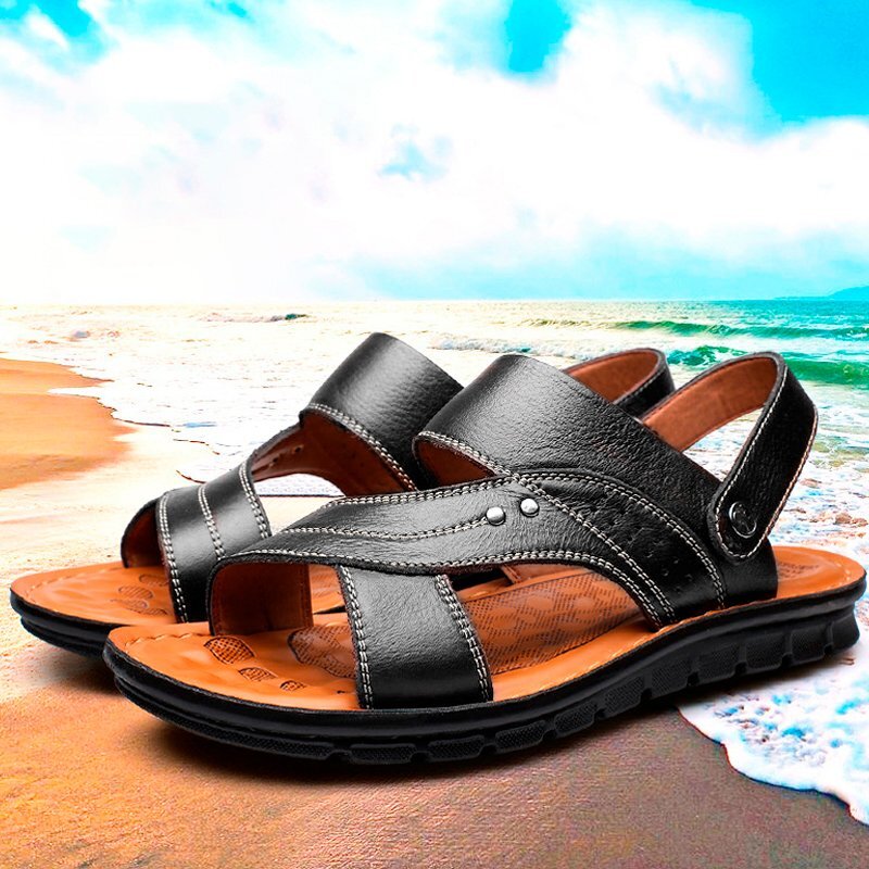 - サンダル メンズ スリッパ 夏 おしゃれ 快適 通気 滑り止め 牛革 スポーツ 軽い 履きやすい 24~27cm ★ブラック★