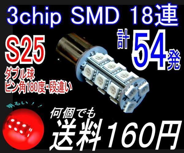 - 【みねや】S25 ダブル BAY15D レッド★3chip SMD18連★送料160円