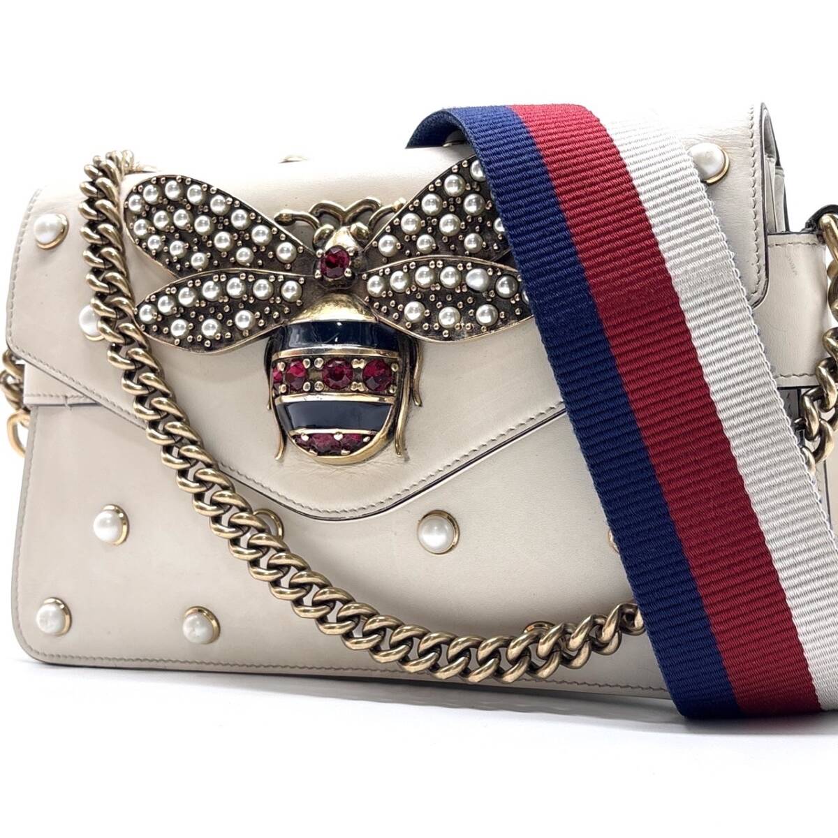 - 美品 GUCCI グッチ ブロードウェイ クイーンマーガレット 2way チェーンショルダーバッグ バック カバン 鞄 白色 レディース