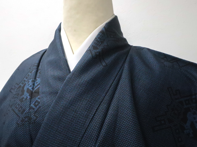 - 《京都一輝堂》リサイクル着物 大島紬 7マルキ 有栖川 しつけ付 証紙付き 正絹 身丈約162.5cm 裄丈約66cm 25z07-3893