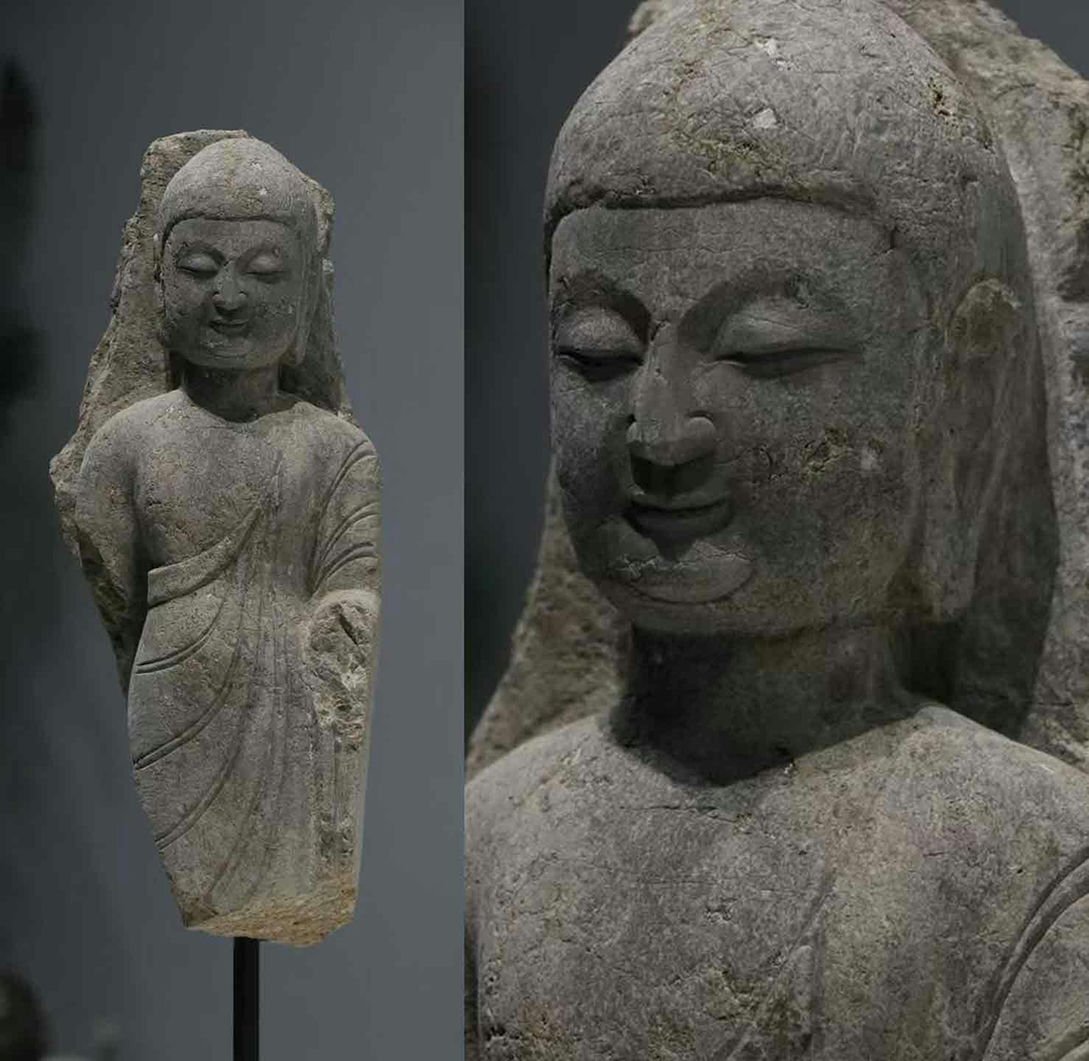 - ▼渡鶴羽▼W204北魏時代 青石残仏身 青石細工彫刻★仏教古美術★仏像★細密細工★廃寺旧蔵★廃寺買出品