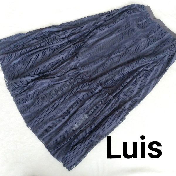 - ▲【未使用・タグ付】LUIS ルイス パンチングスカート ブルー系 ウエストゴム W60~ 丈89