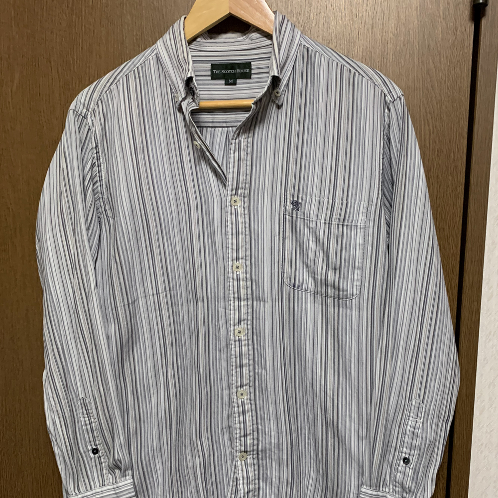 - M【THE SCOTCH HOUSE|長袖BDシャツ】スコッチハウス グレイ系ストライプ ボタンダウン 長袖シャツ