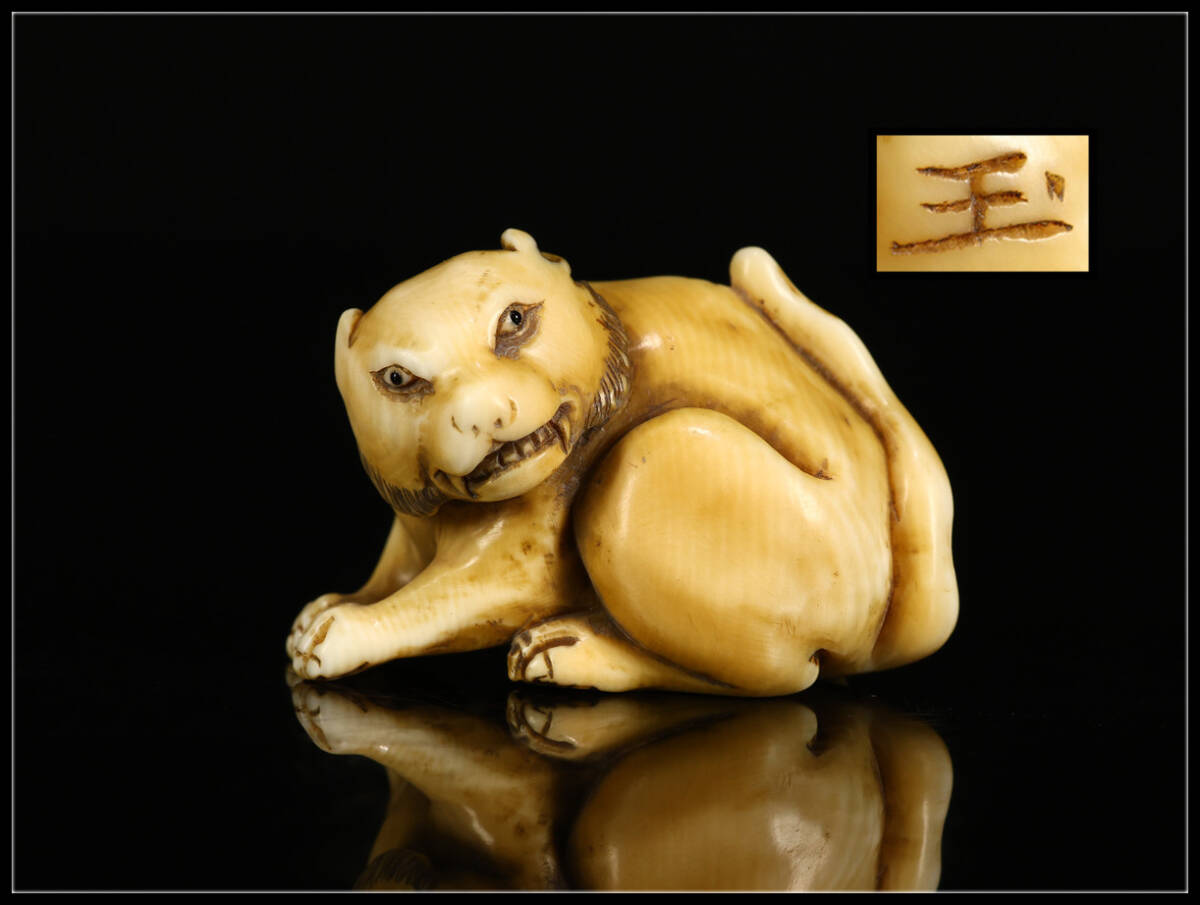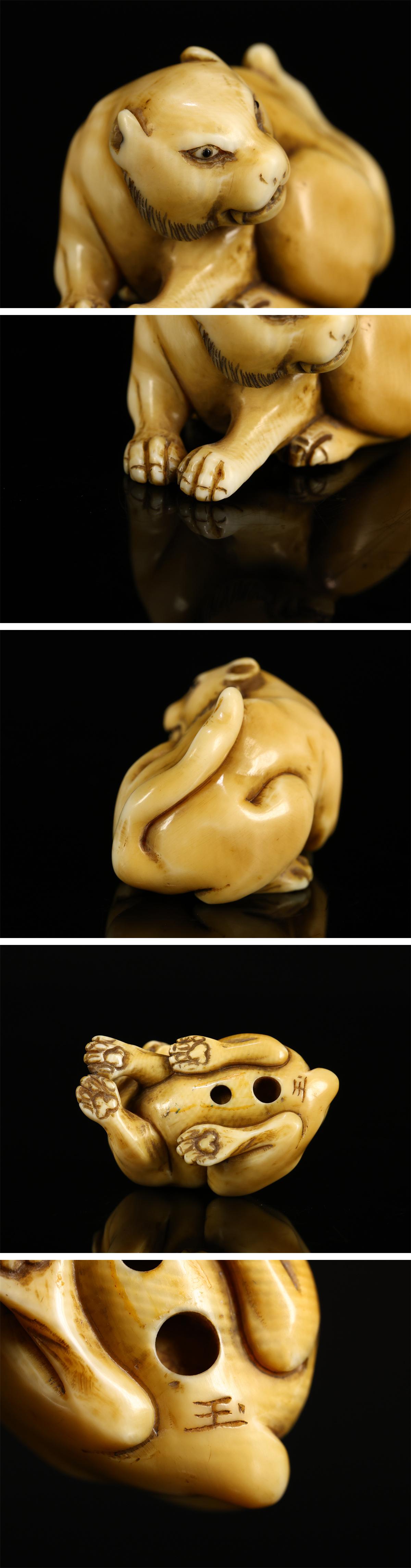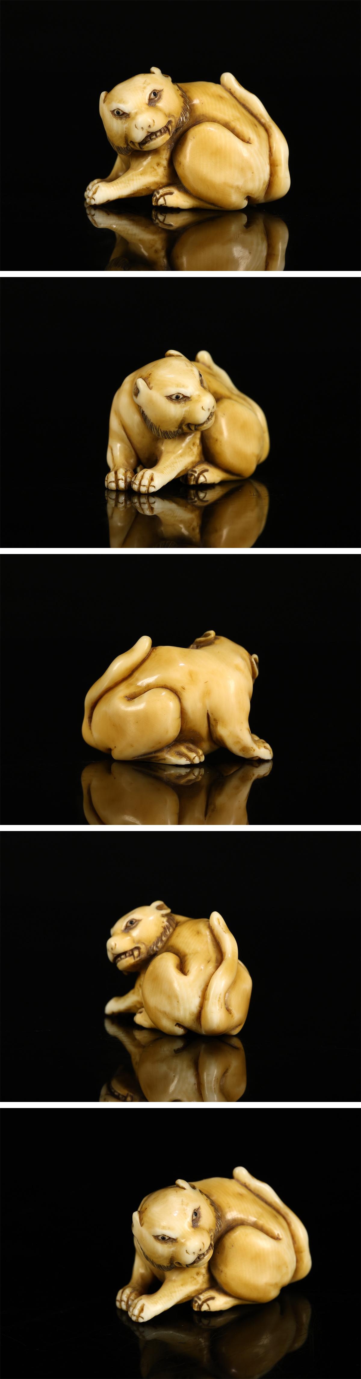 - 久1230 江戸時代 東洋彫刻 極細工 獣彫 根付 重20g 極美品Ng