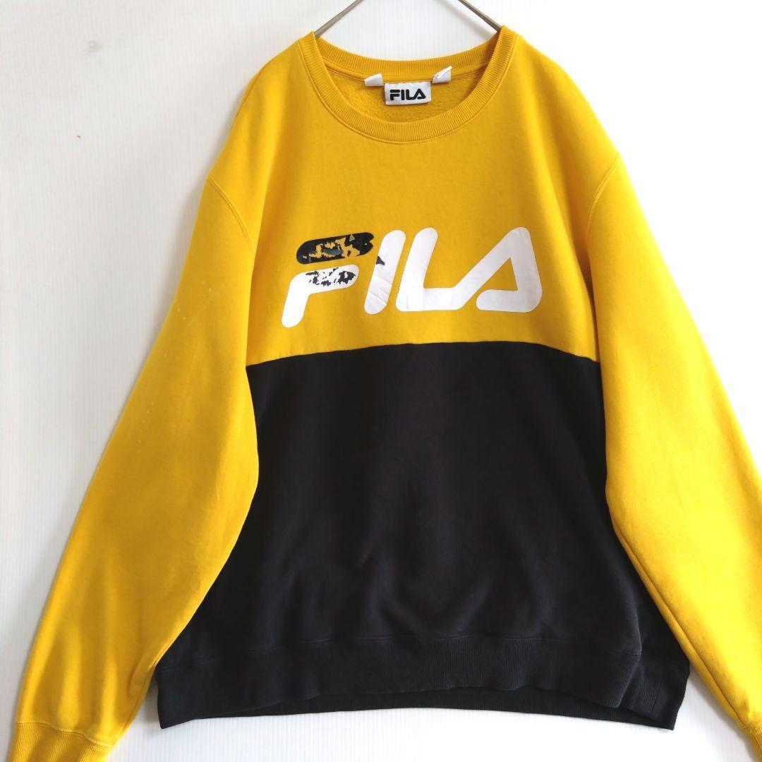 - A857 FILA スウェットビックトレーナ 2XL 黒黄色 US古着