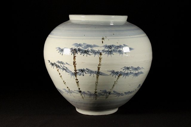 > ☆撫子☆李朝 朝鮮美術 染付大壷 竹紋 幅約37cm (検)壷 骨董 古玩 朝鮮 分院