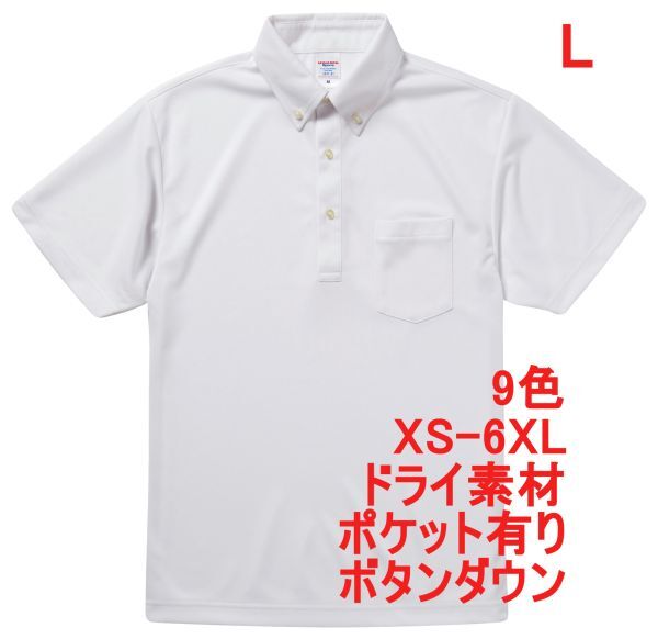- ポロシャツ L ホワイト ボタンダウン 半袖ポロシャツ 半袖 ドライ素材 ドライ 無地 吸水 速乾 胸ポケット有 A618 白 白色 592101 5921