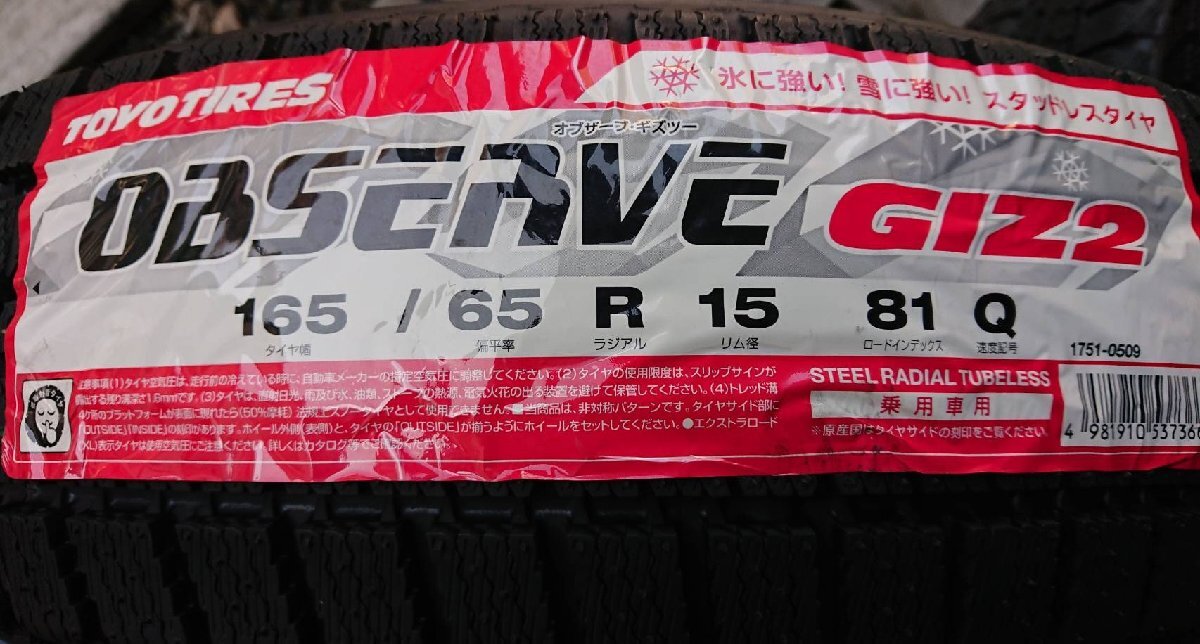 > 【2023年製/送料・税込/新品スタッドレス】OBSERVE GIZ2 165/65R15 81Q★4本セット