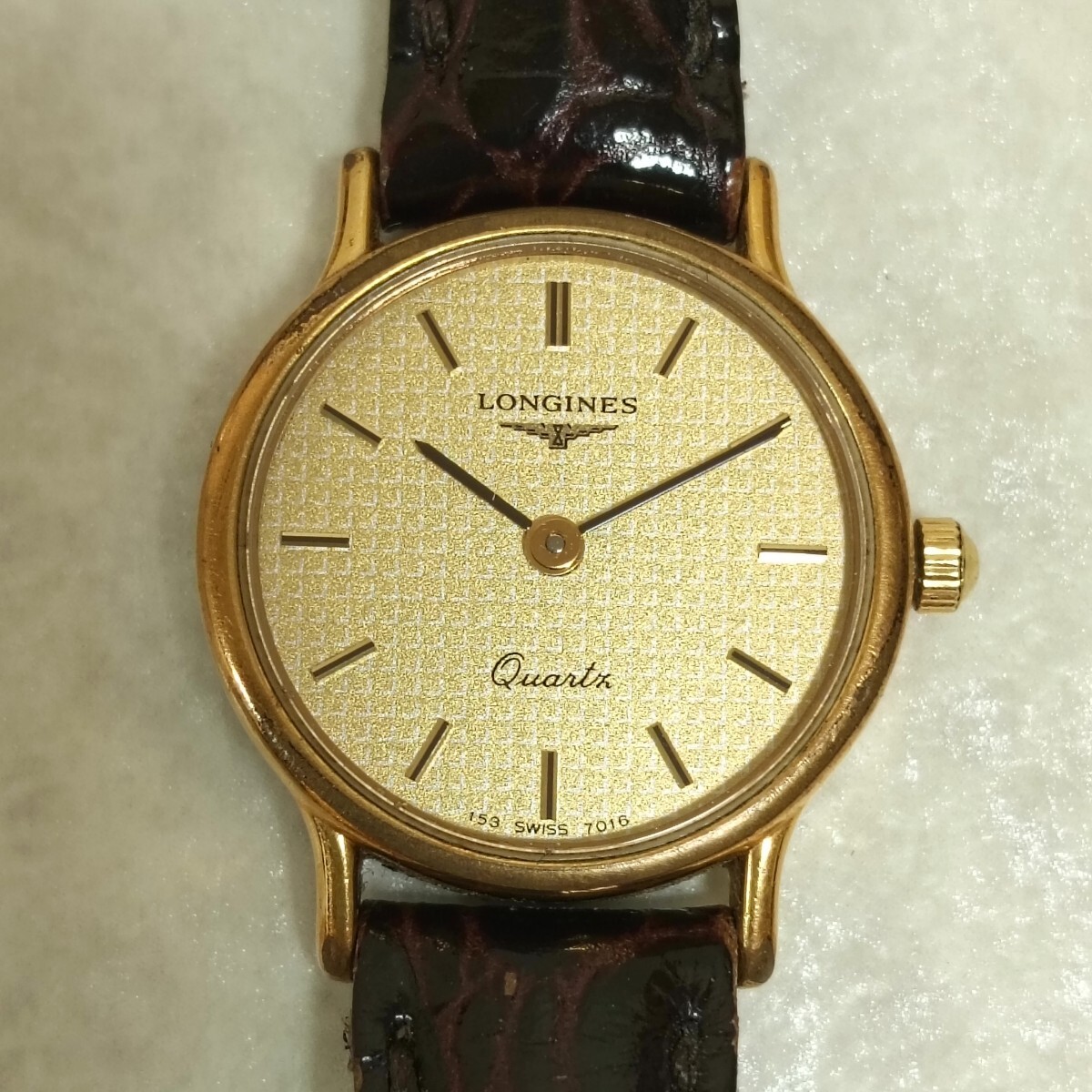 > S【LONGINES】ロンジン レディース 腕時計 ゴールドカラー文字盤 クオーツ 電池式 Quartz ラウンド ステンレス 動作未確認 電池切れ