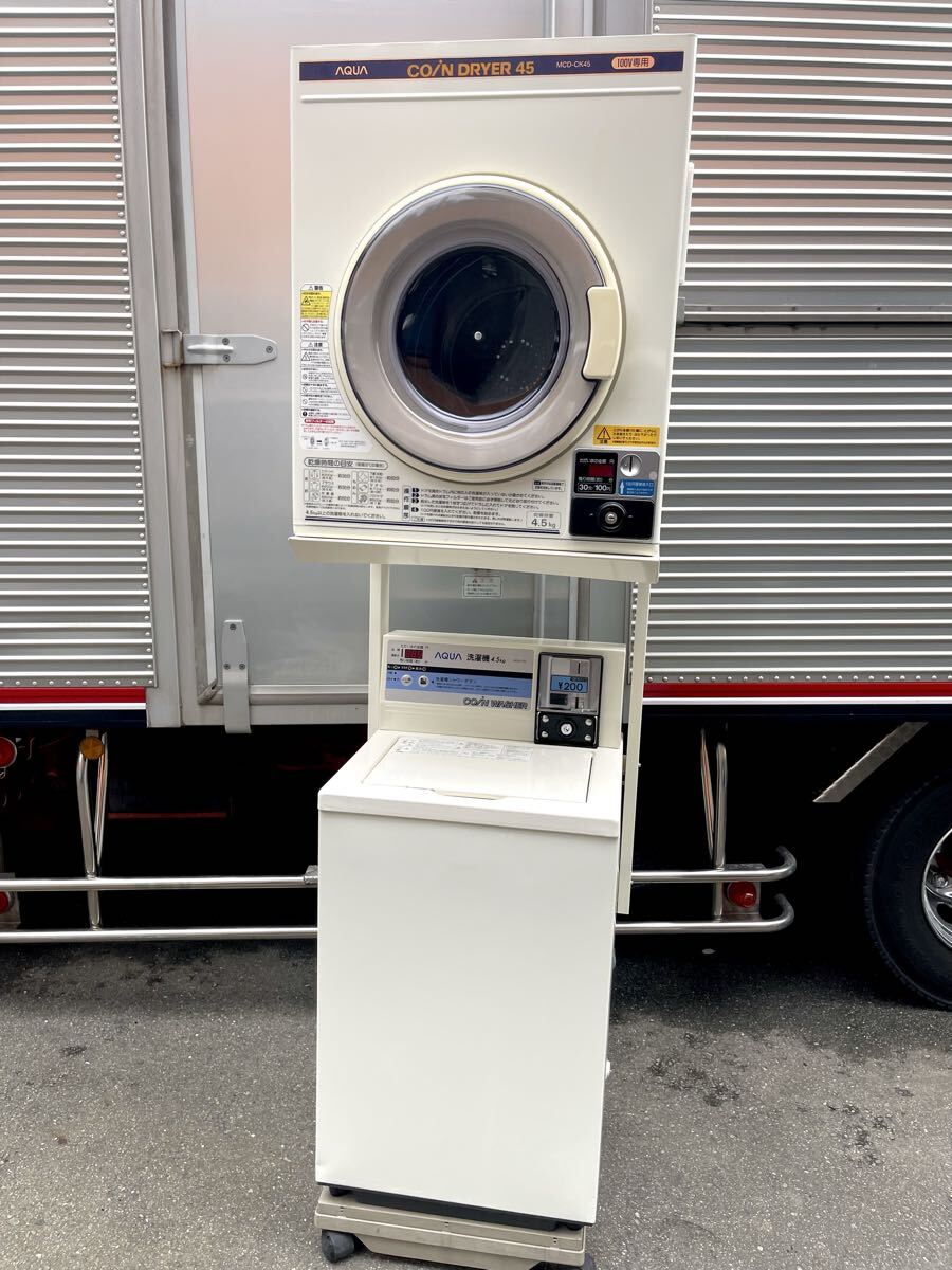> f ★☆業務用 AQUA/アクア コインランドリー 洗濯機: MCW-C45/乾燥機:MCD-CK45専用架台付 金額設定可能