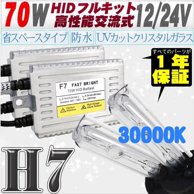 - 高性能 薄型HIDキット 70W H7 30000K 12V/24V 【交流式バラスト&クリスタルガラスバーナー】