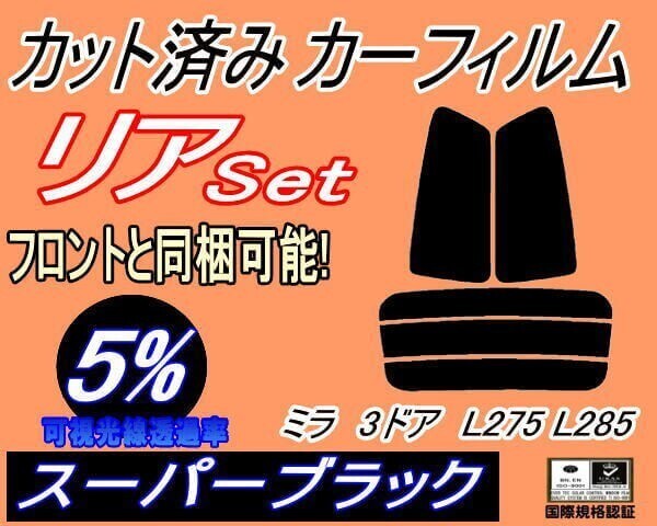 > カーフィルム スーパーブラック カット済み リアセット ミラ 3ドア L275 L285 (s) スモーク L275V 285V 3ドア用 ダイハツ