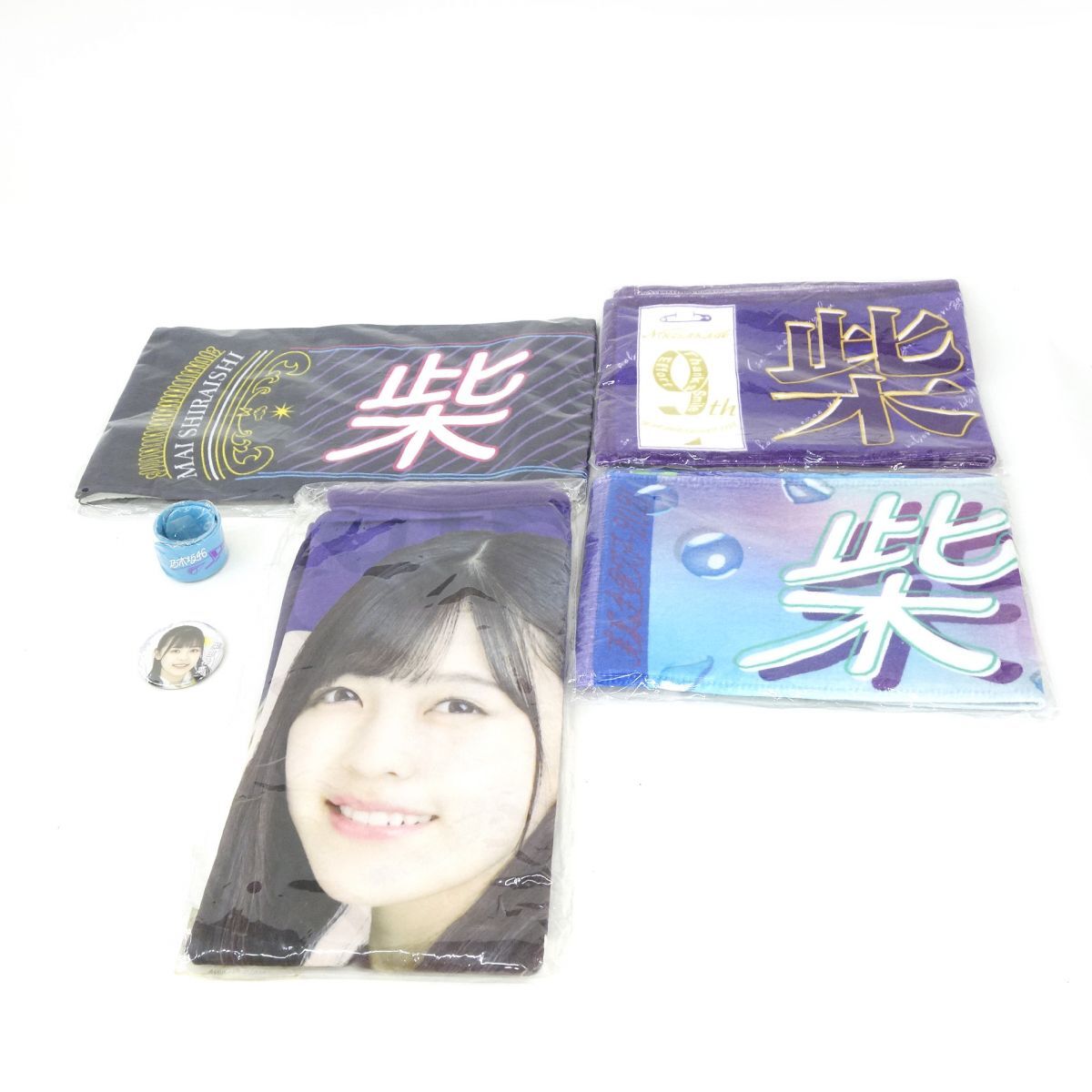 - 030s 乃木坂46 柴田柚菜 グッズ まとめ マフラータオル 3点・ブランケット・缶バッジ・スナップラバーバンド ※中古(未開封あり)