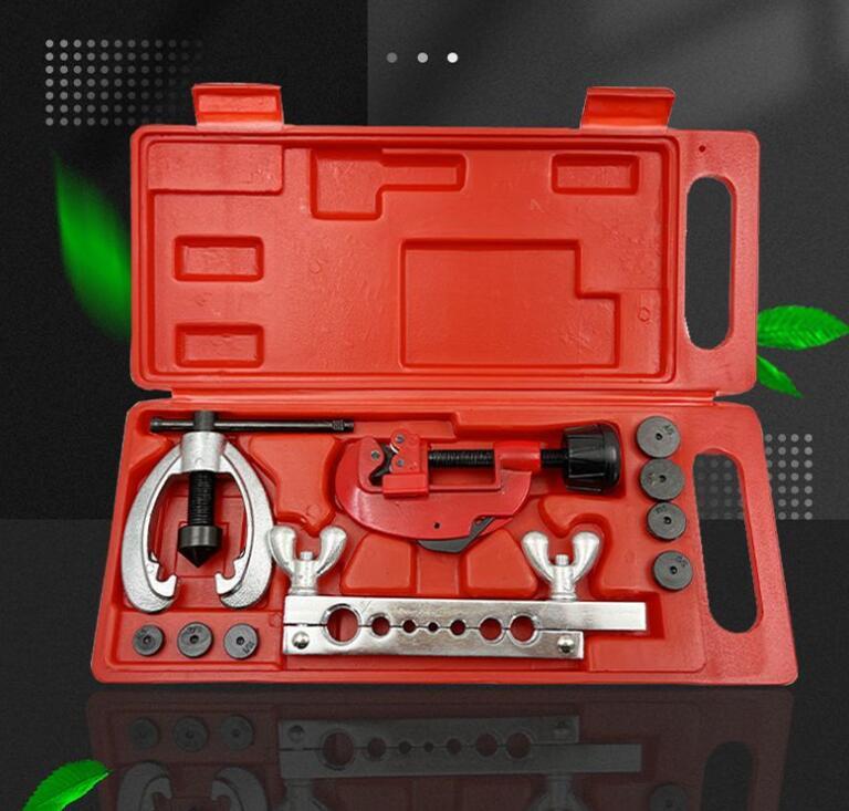 - 人気ダブルフレアリングツール キット フレア加工 アダプター 7種類 カーエアコン ルームエアコン 冷媒対応 工具 パイプ切断 バリ取り 加工