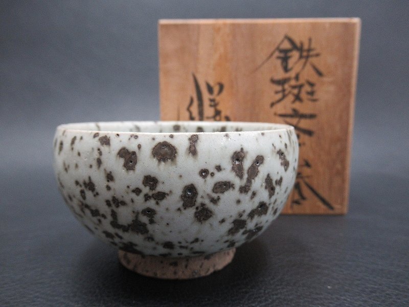 D2876 浅野勝 益子焼 鉄斑文 ぐい呑 猪口 酒盃 酒杯 酒器 共箱