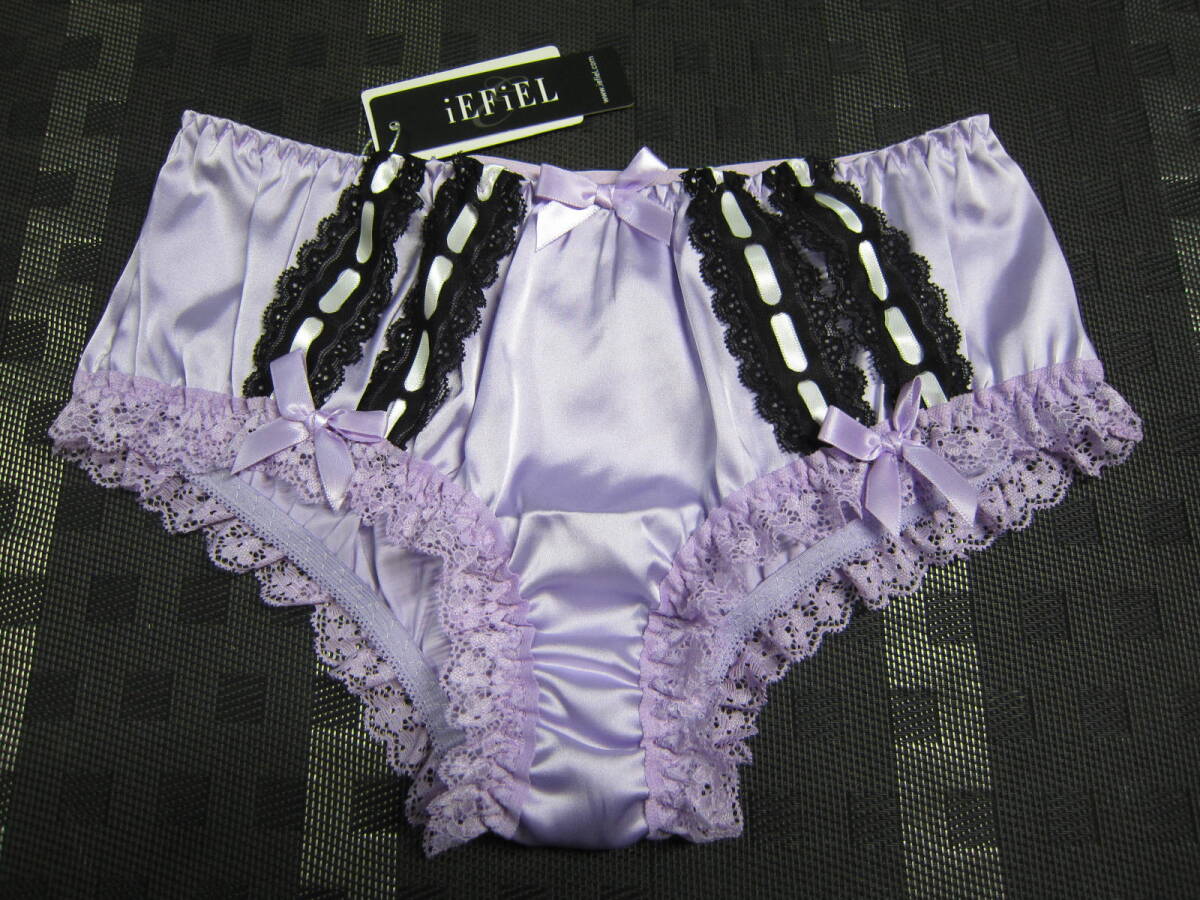 - 紫 黒レース サテン ショーツ 新品 未使用品