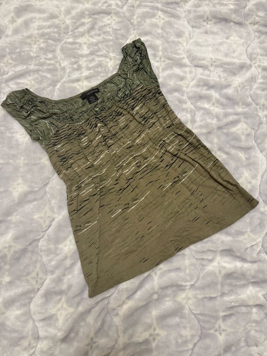- カルバンクライン 未着用 綿100% S M アート柄 ノースリーブ チュニック トップス ジーンズ カーキ ブラウス