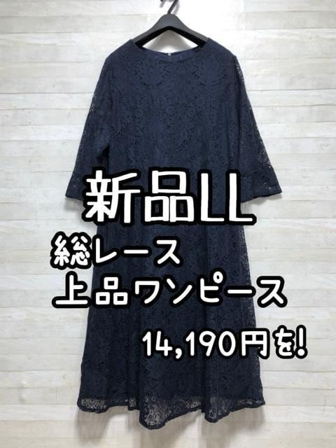 - 新品☆LL♪紺♪総レースの上品ワンピース♪大人フォーマル♪パーティー☆Q455