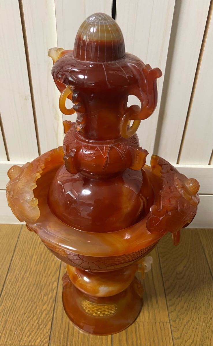 - ★赤瑪瑙 メノウ 中国美術 高級香炉 香道具 中国古玩 中国玉石 唐物 高さ約35cm★1004