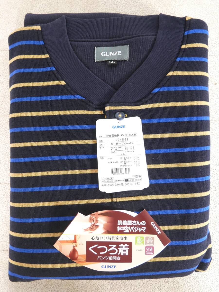 - ■GUNZE グンゼ◇メンズ 紳士長袖・長パンツパジャマ くつろ着(前あき) LLサイズ ネイビーブルー64【SG4569】■