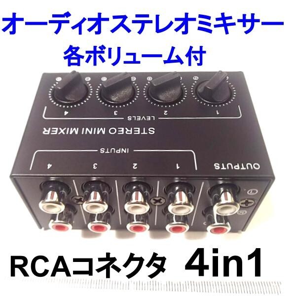 - オーディオステレオミキサー各ボリューム付き RCAコネクタ4in1 電源不要 ★鄭AV