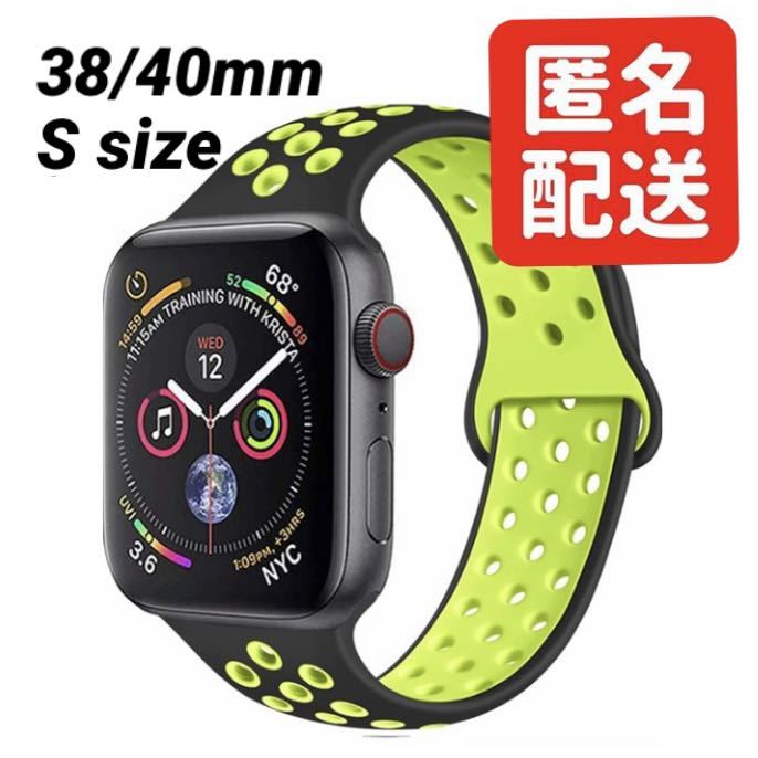 - Apple Watch アップルウォッチ スポーツバンド バンド ベルト ソフト シリコン 取り替え 38mm 40mm ブラック×グリーン Sサイズ ②