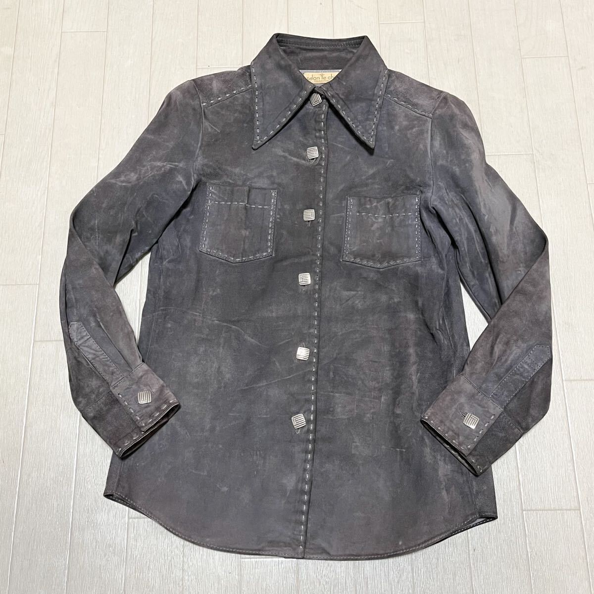 - 和852★ salon le chic TAKASHIMAYA レザーシャツ ボタンシャツ 長袖 グレー レディース