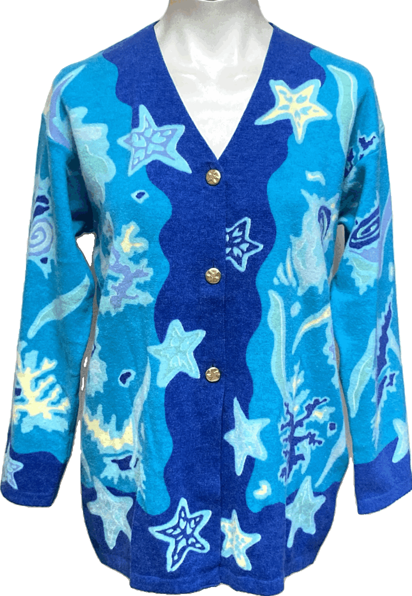 - ☆ビアッジョブルーViaggio Blu ウールナイロンハイゲージニットカーディガン 海モチーフ水色2☆