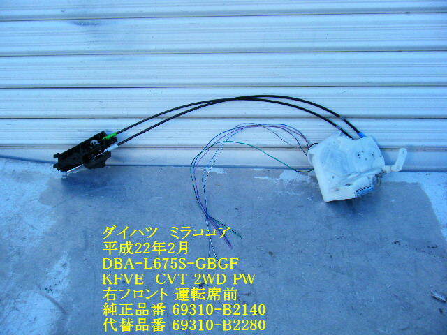 - ◆L675S ダイハツ ミラココア 右 フロント ドアロックアクチュエーター 運転席前部 69310-B2280 or 69310-B2140 [14225]