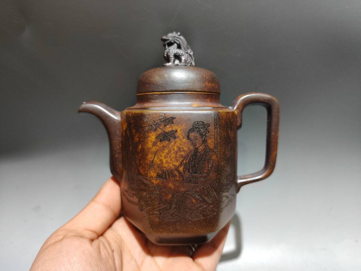 - 『館蔵珍品 紫砂壺 六方龍壺 李志剛款 龍骨金砂 紫砂壺 茶具 茶道品』稀少珍蔵品 古賞物 貴重物品 収蔵品 中国古美術 時代物 古董品