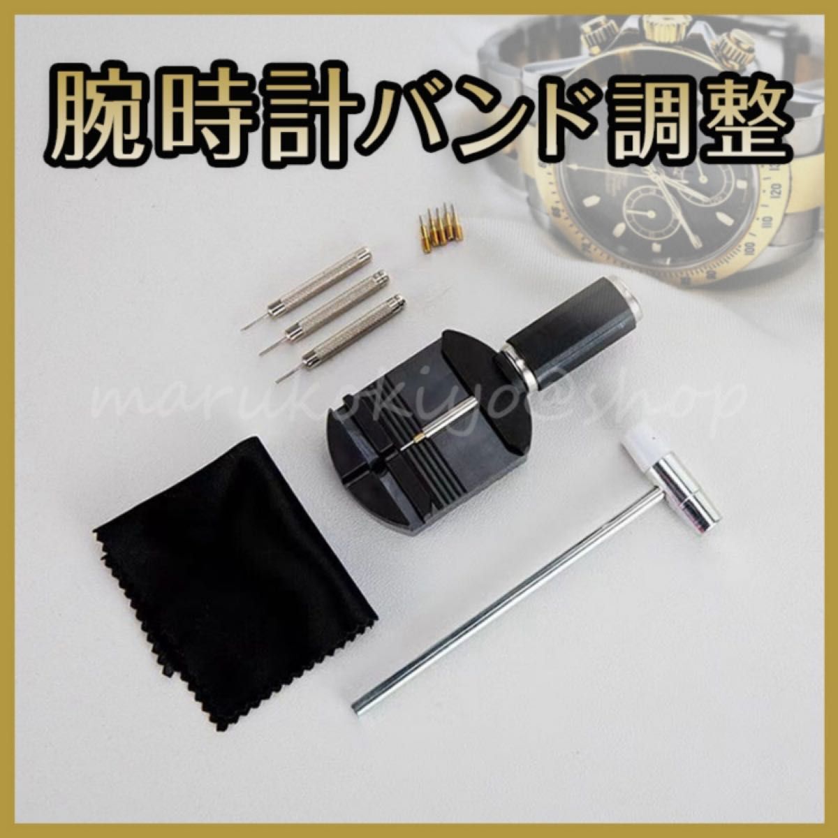 - 腕時計ベルト調整工具 セット ピン式こまはずし メタルバンド ピン抜き ハンマー 交換ピン サイズ直し クロス付き 黒 ブラック