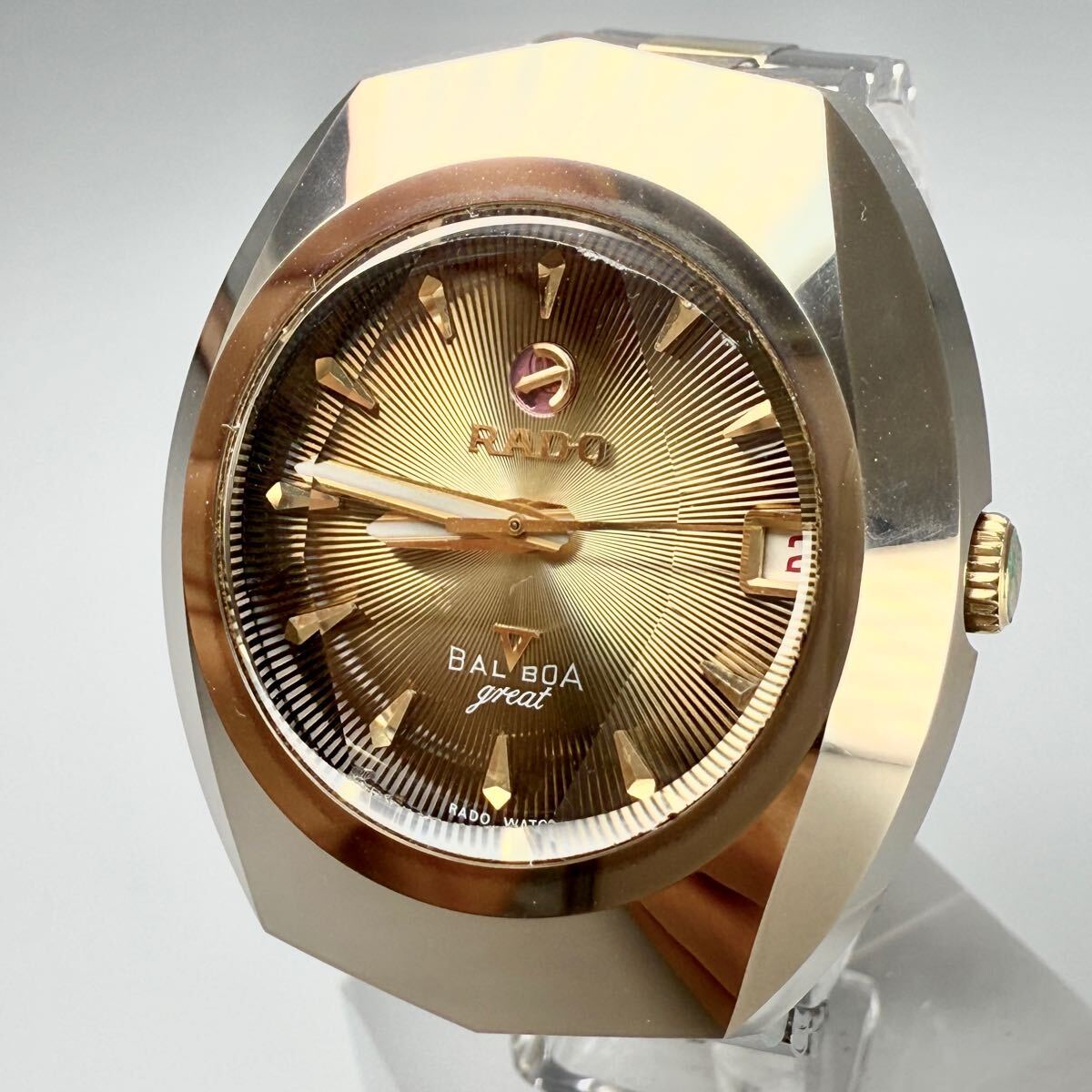 > メンズ【稼働】RADO/ラドー BALBOA/バルボア 腕時計 自動巻き デイト ゴールド文字盤 ヴィンテージウォッチ カットガラス 超硬金ケース