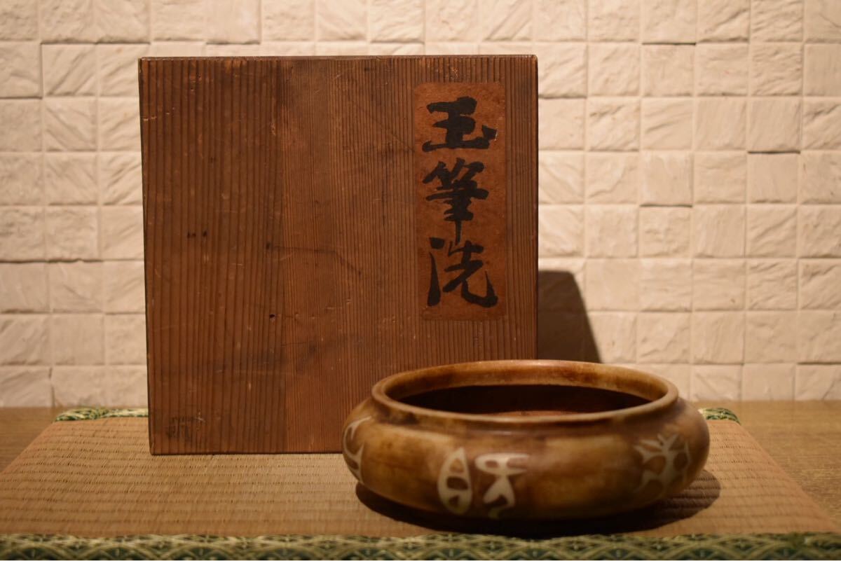 > 【GE】Z550【コレクター所蔵品】時代 古砡筆洗/中国古玩 中国美術 書道具 文房具 玉石 骨董品 時代品 美術品 古美術品 gi