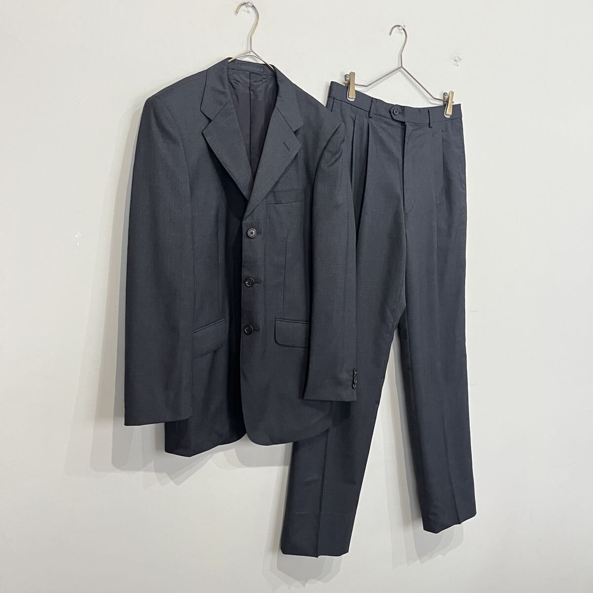 - Paul Smith ポールスミス LONDON ウールセットアップ ストライプ シングルジャケット シングル3つボタン 黒 グレー系 汚れあり 3B