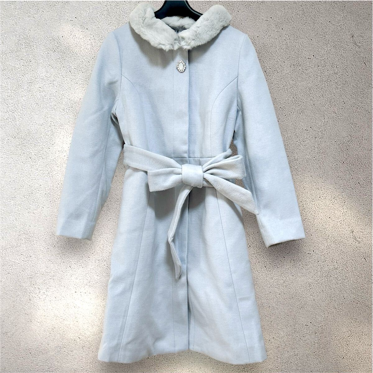 > MISCH MASCH (ミッシュマッシュ) 5WAY ラビットファー付きコート アイスブルー Mサイズ Aライン リボン付き YU