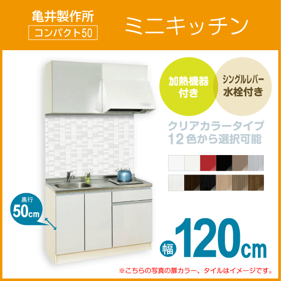 > ミニキッチン コンパクト50(扉カラー:クリア) 間口120cm フルタイプ SS120FJTK2R,SS120FJTK2L 亀井製作所 1,200mm