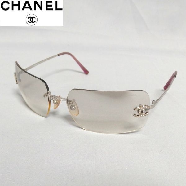 > 良品★CHANEL ココマーク ラインストーン ツーポイント サングラス 4017-D ライトグレーレンズ ヴィンテージ オールド シャネル★
